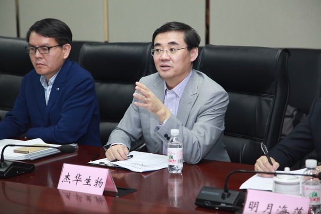 2018年4月25日,山东省食品药品监督管理局党组书记、局长马越男到杰华青岛生产基地调研,杰华生物集团CEO刘龙斌博士向马局长一行详细介绍了GMP车间的基本情况,汇报了集团的产业发展历程和规划。