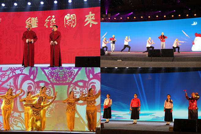 年会节目全部由杰华员工自编自演,主题鲜明突出、形式活泼新颖、内容积极向上,令人目不暇接。年会视频中员工们的深情祝愿和灿烂笑脸,饱含了作为公司一员的自信与自豪;热烈、激昂的开场舞展示了杰华人的洒脱、傲气与豪情。整个年会分为《英雄一啸》、《力争朝夕》、《展我杰华》三个章节,如行云流水般讲述着杰华的发展历程与未来之路。气势高昂的歌曲,跨越时空的舞台剧,别出心裁的舞蹈,沁人心脾的诗朗诵,畅快淋漓的鼓乐、快板和三句半,欢快诙谐的相声和魔术……,让人思绪万千、难以忘怀,演绎了杰华人的另一种精彩。全员大合唱《喜迎杰华春天》,将年会推向高潮,台上台下互动欢歌,唱出了杰华人对美好明天的向往与追求,唱出了杰华集团对发展原创新药的信心与决心。