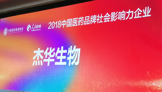 2019年3月30日,“2019中国医药品牌论坛”及“2018中国医药品牌社会影响力排行榜颁奖盛典”在浙江省杭州市举行,杰华生物入选2018中国医药品牌社会影响力企业排行榜榜单。