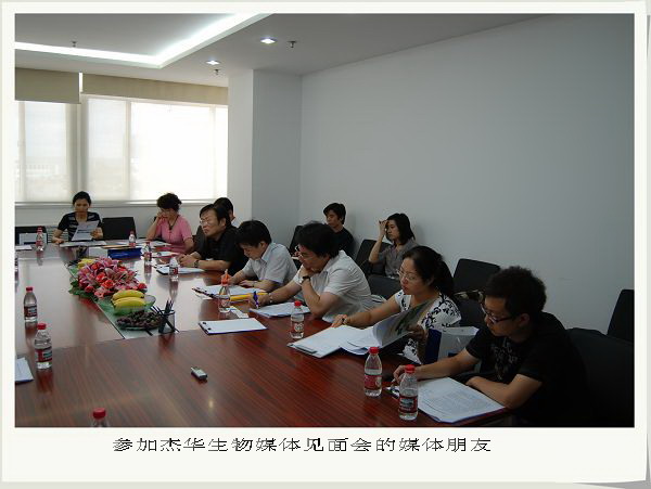 2008年8月1日,杰华生物技术(北京)有限公司内部举行了第一次媒体见面会。这是杰华生物第一次正式面对各路记者,整体介绍公司发展及动态。来自《中国新闻周刊》、《新京报》、《中国医药报》、人民卫生出版社等的多家媒体工作者参加了见面会。