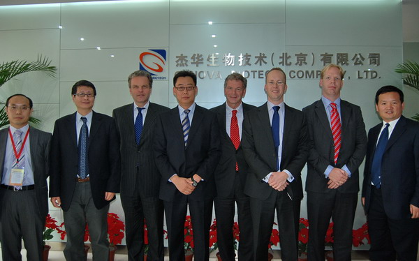 2008年11月4日,由荷兰阿姆斯特丹证券交易所总裁威勒波易斯先生、普华永道合伙人皮特.涅波先生、普华永道资本市场主任马丁.科恩先生、荷兰律师事务所合伙人利兹曼先生及卓迈集团主席、中欧基金主席郭育芳先生等组成的荷兰金融考察团一行9人来到杰华生物北京总部进行商务访问。杰华生物资深副总裁吕秋军教授、副总裁孙俭波先生同市场部、技术部及工程部各副总及总裁助理等参加了会谈。