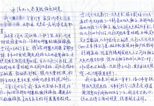 内蒙古癌症患者随信息表寄来的临床研究申请书