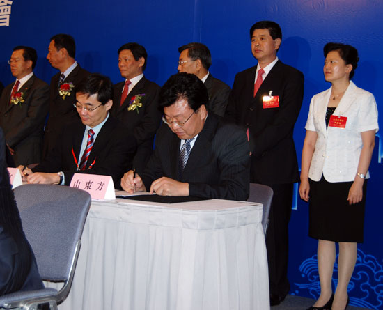 期间,刘董事长作为签约嘉宾参加了7月17日在香港会展中心举办的2009(香港)山东省区域发展战略说明会暨经贸洽谈会。会上,举行了重点合作项目签约仪式,共签订项目目72个,总投资287亿美元。项目涉及高新技术产业、生物制药产业、先进制造业、环保产业、现代服务业等领域。刘龙斌董事长与青岛市城阳区李桂锡副区长签署了生物城项目合作协议。根据协议,杰华生物将斥资3亿美金,在青岛出口加工区建设占地面积1680亩,集“总部基地、生产基地、研发基地、医疗健康基地”为一体的世界级生物城。