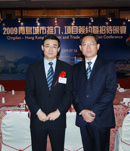 7月14日至17日,应山东省青岛市城阳区政府邀请,杰华生物董事长刘龙斌博士携总裁行政助理丁大勇一行2人前往香港,参加由山东省政府主办的“2009(香港)山东省区域发展战略说明会暨经贸洽谈会”系列经贸活动。