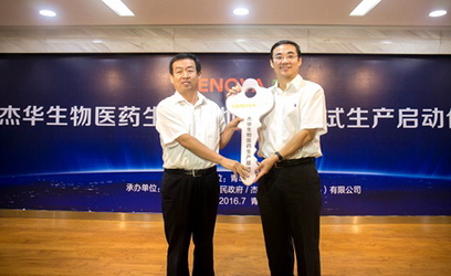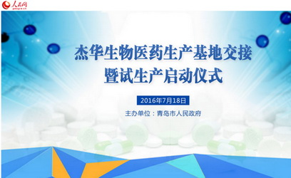 2016年7月18日上午,杰华生物医药生产基地交接暨试生产启动仪式,在山东省青岛市崂山区举行。青岛市委副书记、市长张新起等领导人参加了活动,标志着杰华青岛生产基地正式投入试生产。