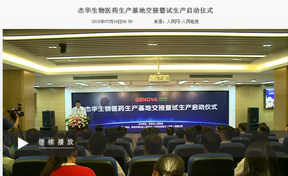 人民网、凤凰网、新华网、中国日报等多家媒体对杰华生物医药生产基地交接暨试生产启动仪式进行了相关报道。