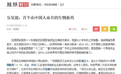 日前,凤凰网等多家媒体对杰华生物专利产品——乐复能进行了相关报道,具体内容点击查看