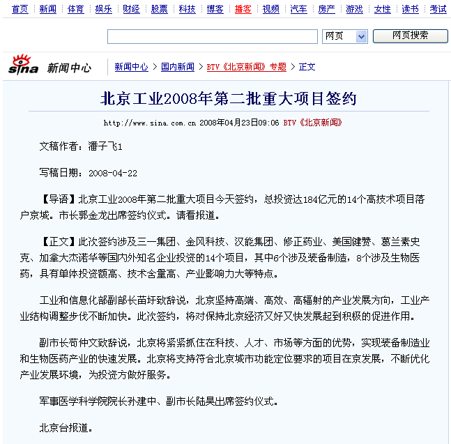上一条:郭金龙出席北京工业08年第二批重大项目签约仪式 2009-04-21