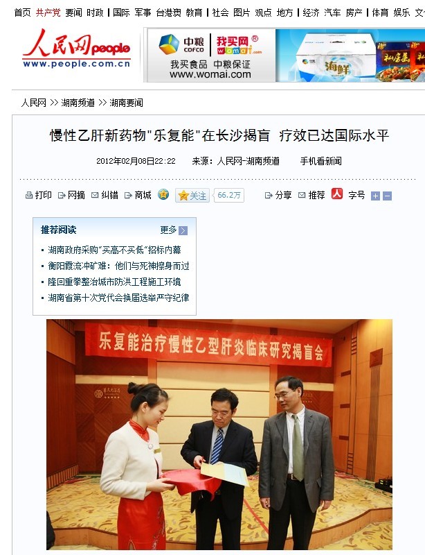 慢性乙肝新药物"乐复能"在长沙揭盲 疗效已达国际水平