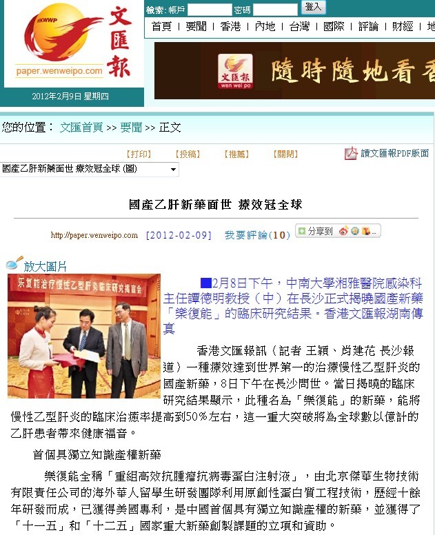 上一条:國産乙肝新藥達國際水平 2012-02-09