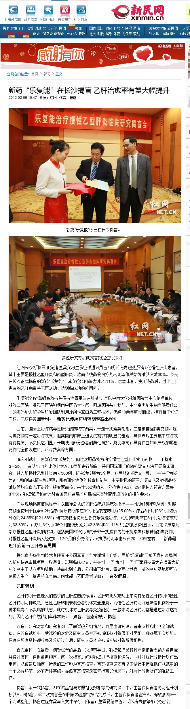 新药“乐复能”在长沙揭盲 乙肝治愈率有望大幅提升