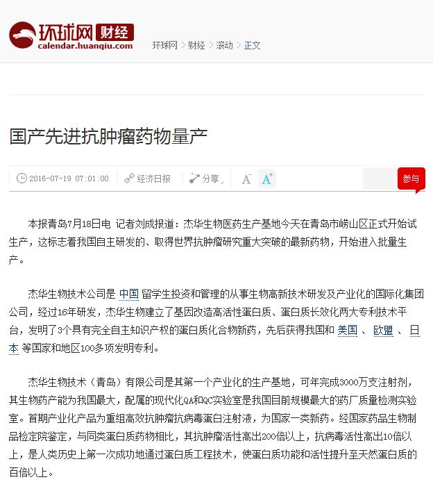 下一条:新浪财经:国产先进抗肿瘤药物量产 2016-07-19