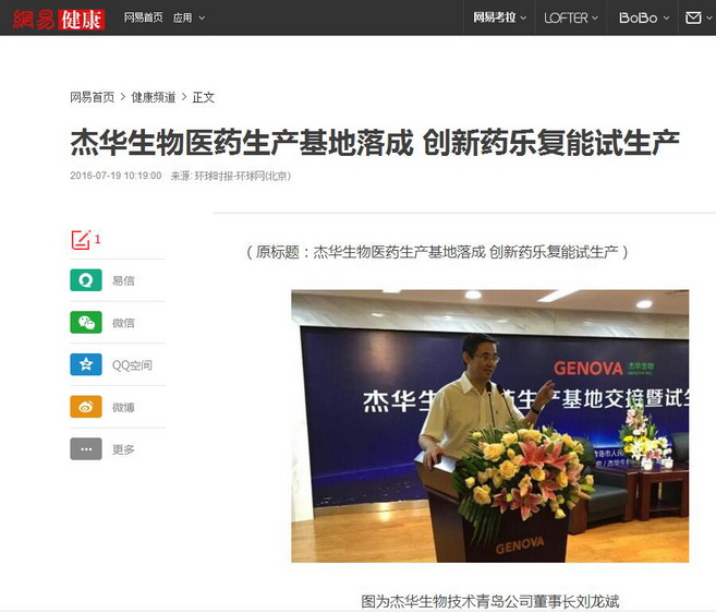 网易健康:杰华生物医药生产基地落成 创新药乐复能试生产
