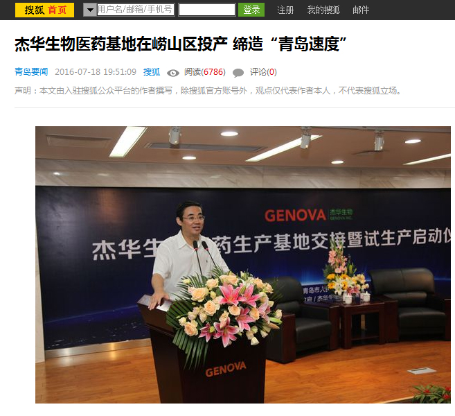搜狐:杰华生物医药基地在崂山区投产 缔造“青岛速度”