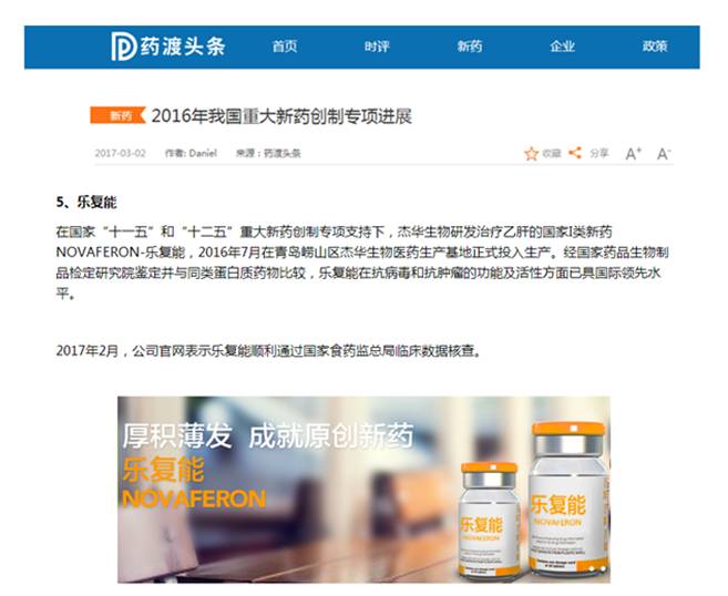 下一条:科技部:我国原创新药乐复能(Novaferon)投产 2016-08-15