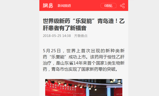 网易:世界级新药“乐复能”青岛造!乙肝患者有了新福音