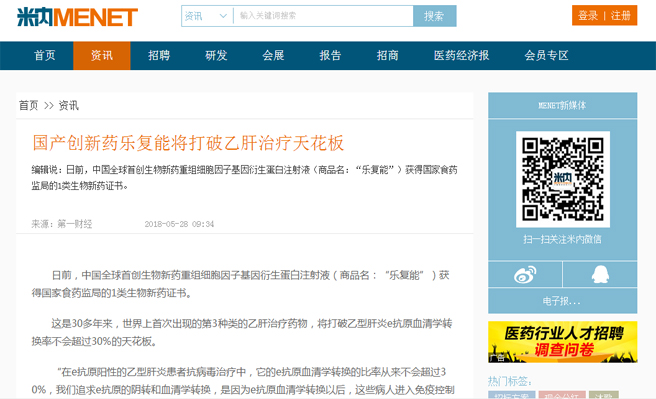 米内网:国产创新药乐复能将打破乙肝治疗天花板