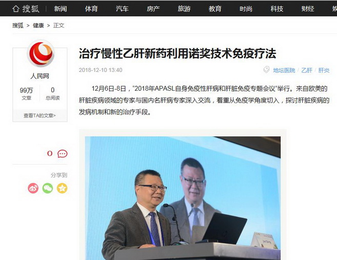 搜狐健康:治疗慢性乙肝新药利用诺奖技术免疫疗法