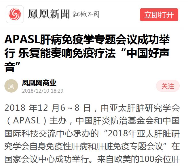 凤凰网:APASL肝病免疫学专题会议成功举行 乐复能奏响免疫疗法“中国好声音”