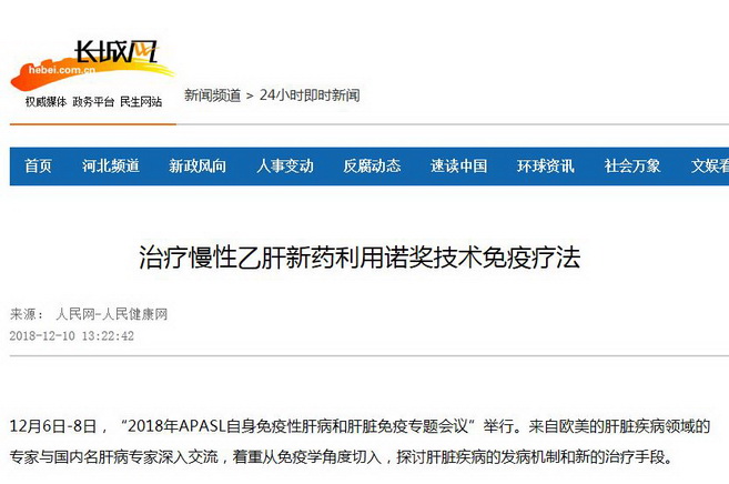 长城网:治疗慢性乙肝新药利用诺奖技术免疫疗法