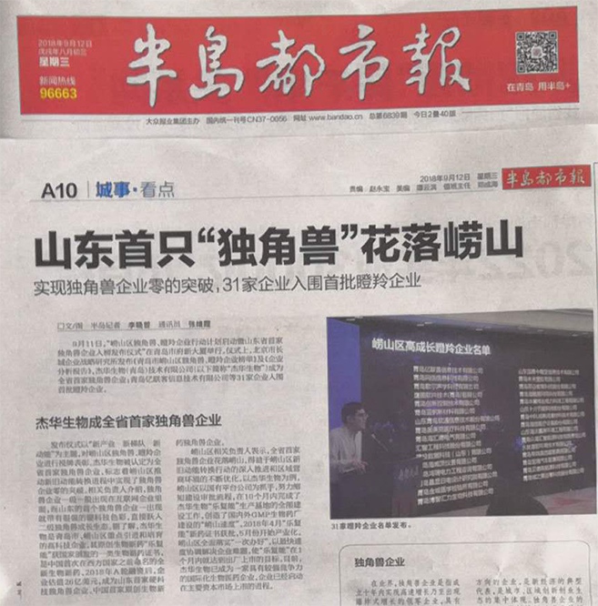 半岛都市报:山东首只"独角兽"花落崂山