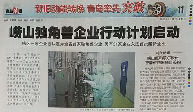 上一条:青岛晚报:杰华生物成全省首家“独角兽” 2018-09-12
