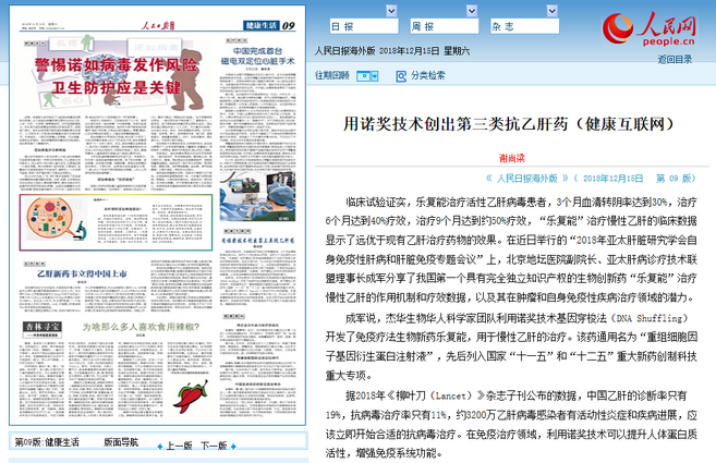 人民日报海外版 :用诺奖技术创出第三类抗乙肝药