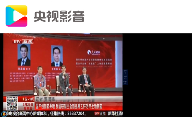 BTV新闻频道:国产创新药井喷 我国研制出全新品种乙肝治疗生物新药