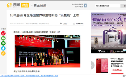 信网:18年磨砺 青企炼出世界级生物新药“乐复能”上市