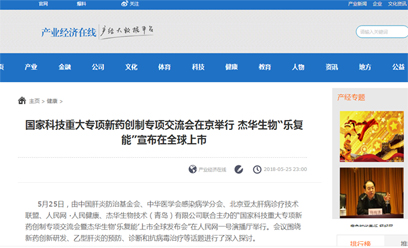 产业经济在线:国家科技重大专项新药创制专项交流会在京举行 杰华生物“乐复能”宣布在全球上市