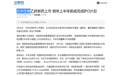 21财经:杰华生物乙肝新药上市 明年上半年前或完成IPO计划