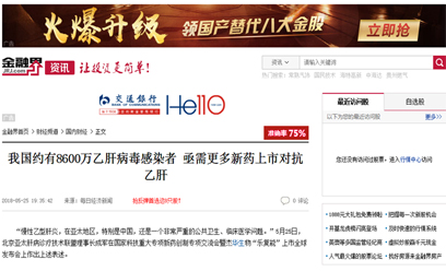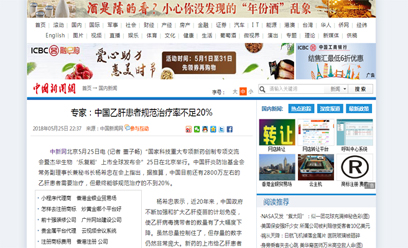 中国新闻网:专家:中国乙肝患者规范治疗率不足20%