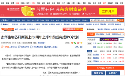 东方财富网:杰华生物乙肝新药上市 明年上半年前或完成IPO计划