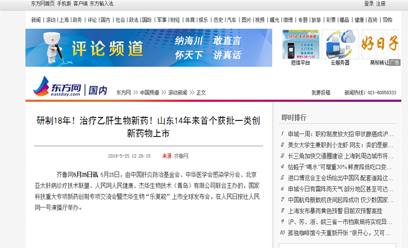 东方网:研制18年!治疗乙肝生物新药!山东14年来首个获批一类创新药物上市