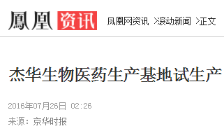 网易荐新闻:杰华生物医药生产基地在青岛投入试生产