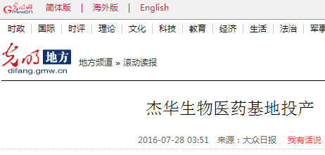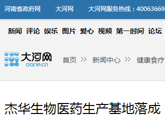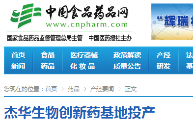 大河网:杰华生物医药生产基地落成 创新药乐复能试生产