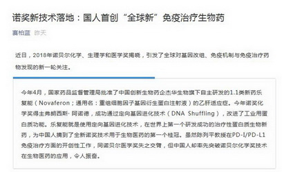 赛柏蓝 :诺奖新技术落地:国人首创“全球新”免疫治疗生物药