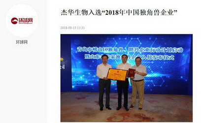 环球网:杰华生物入选“2018年中国独角兽企业”