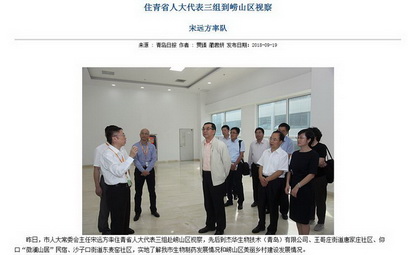 2018年9月18日,青岛市人大常委会主任宋远方率住青省人大代表三组到杰华生物技术(青岛)有限公司视察。