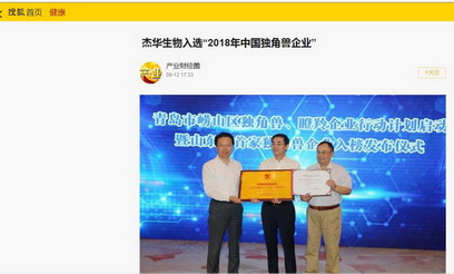 搜狐健康:杰华生物入选“2018年中国独角兽企业”