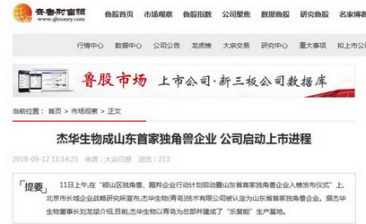 齐鲁财富网:杰华生物成山东首家独角兽企业 公司启动上市进程