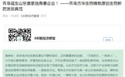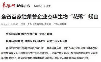 青报网:全省首家独角兽企业杰华生物“花落”崂山