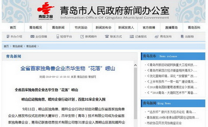 青岛人民政府新闻办:全省首家独角兽企业杰华生物“花落”崂山
