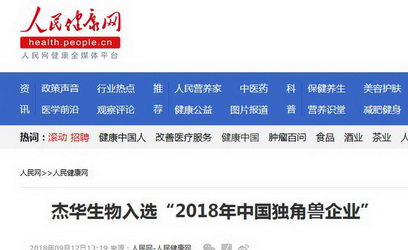 人民网:杰华生物入选“2018年中国独角兽企业”