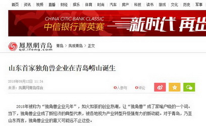 凤凰网青岛:山东首家独角兽企业在青岛崂山诞生