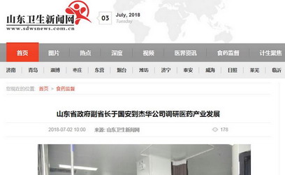山东卫生新闻网:山东省政府副省长于国安到杰华公司调研医药产业发展
