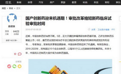 搜狐财经:国产创新药迎来机遇期!审批改革缩短新药临床试验审批时间