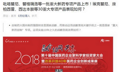 E药经理人:吡咯替尼、替格瑞洛等一批重大新药专项产品上市!埃克替尼、康柏西普、西达本胺等30重大专项产品表现如何?