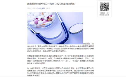 EEO大健康:国家新药创制专项又一成果,抗乙肝生物药获批