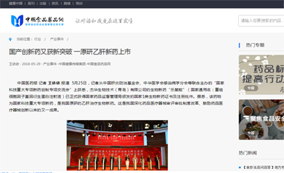 中国食品药品网:国产创新药又获新突破 一原研乙肝新药上市